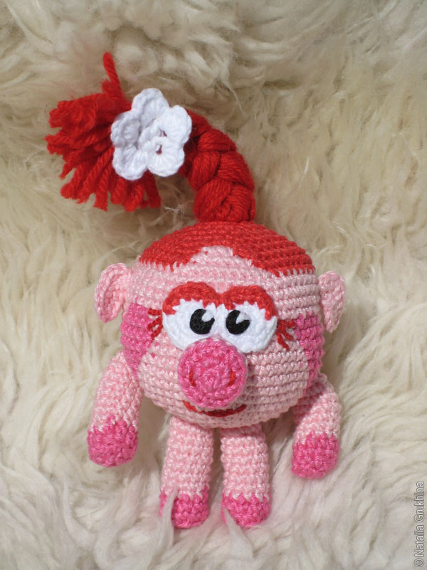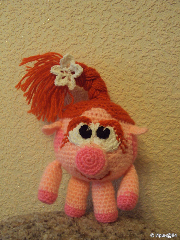 Здравствуйте, Наташа. Ваши смешарики просто супер. Связала Нюшу в подарок поклоннице смешариков - вот ждём когда Дед мороз её принесёт :) по ходу вязания процесс фотографировала - получиля мастер класс к Вашей работе. Также сдела схемы, для тех кто не любит вязать по описанию (их можно посмотреть здесь). Надеюсь Вы не против :) Возможно где-то, что-то поменяла или добавила, но в основном придерживалась вашего описания. Ещё раз большое спасибо за прекрасную игрушку. Фото работы послала Вам на почту