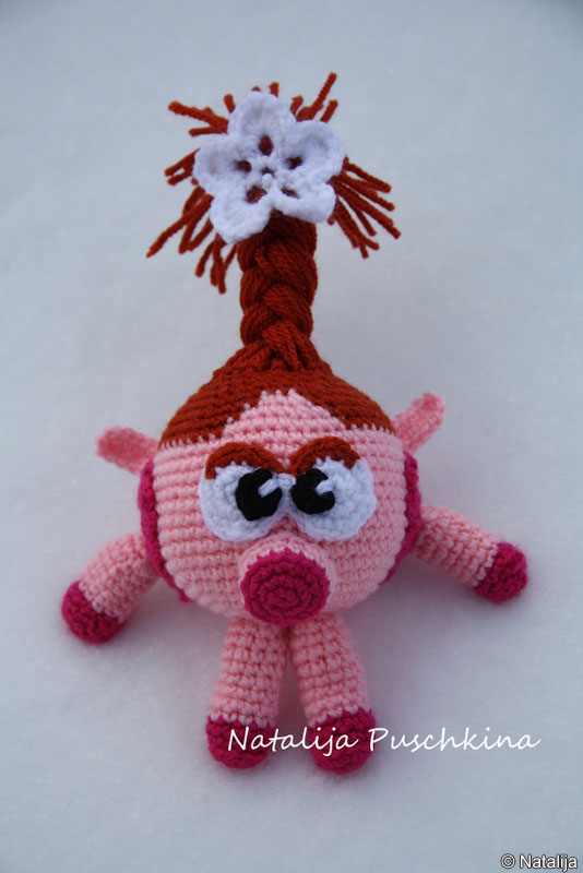 Здравствуйте, Наташа. Ваши смешарики просто супер. Связала Нюшу в подарок поклоннице смешариков - вот ждём когда Дед мороз её принесёт :) по ходу вязания процесс фотографировала - получиля мастер класс к Вашей работе. Также сдела схемы, для тех кто не любит вязать по описанию (их можно посмотреть здесь). Надеюсь Вы не против :) Возможно где-то, что-то поменяла или добавила, но в основном придерживалась вашего описания. Ещё раз большое спасибо за прекрасную игрушку. Фото работы послала Вам на почту