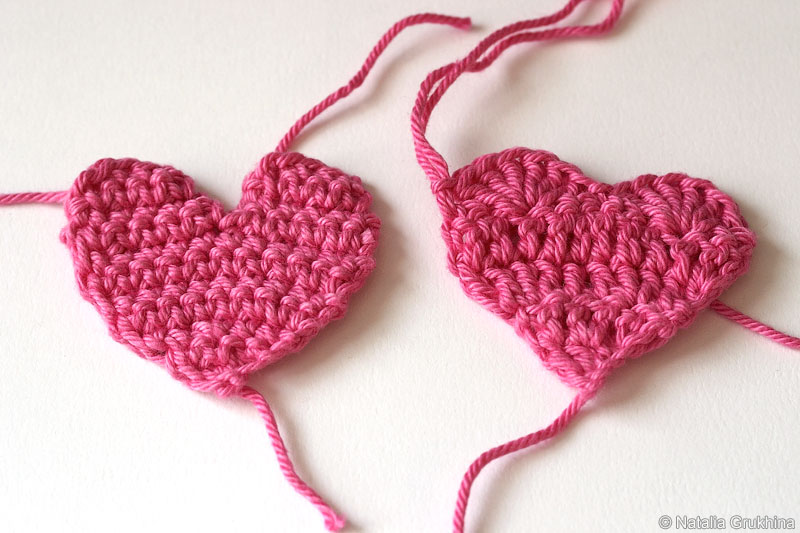 В текст описания я добавила схему, которую можно взять за основу при вязании сердечек.